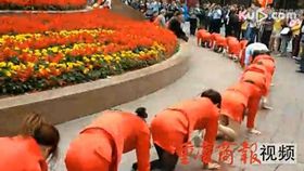 重慶員工跪地繞解放碑爬行