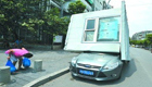 實(shí)拍:寶馬車追尾小貨車 百根鋼筋穿透車身