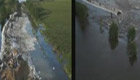 航拍黑龍江肇興鎮(zhèn)堤壩決口前后畫面