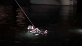 男子發(fā)現(xiàn)鴨子被凍湖面 跳湖破冰救援