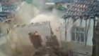 牛人與洪水“斗智斗勇” 騎馬踩高蹺水中出行