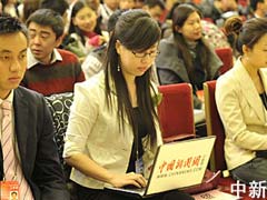 - 中新網(wǎng)報(bào)道:2010-3-14 09:57中新網(wǎng)記者吳歆在第一排占據(jù)了一個(gè)黃金位置,這幾天她和中新社兩會(huì)報(bào)道組的數(shù)十名同事一起,奔波于各個(gè)會(huì)場(chǎng)、駐地。今天終于迎來了兩會(huì)報(bào)道的最后一戰(zhàn)。
