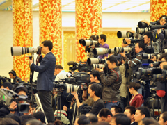 - 中新網(wǎng)報(bào)道:2010-3-14 09:46記者會(huì)即將開始,攝影記者已經(jīng)將記者席“包圍”,形形色色的大小攝像攝影器材已經(jīng)架上,會(huì)場(chǎng)一派忙碌景象。