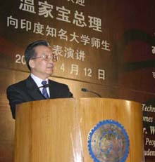 圖:溫家寶在印度德里理工大學發(fā)表演講