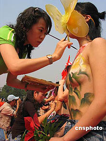 南京中秋上演人體彩繪