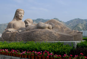 雕塑《黃河母親》由甘肅著名的雕塑家何鄂女士創(chuàng)作。象征著哺育中華民族生生不息、不屈不撓的黃河母親,和快樂幸福、茁壯成長的華夏子孫。