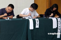 圖:悼念者現(xiàn)場(chǎng)為季老書(shū)寫(xiě)挽聯(lián)