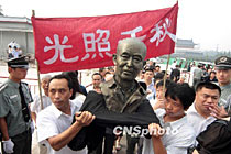 圖:民眾抬雕像送別國(guó)學(xué)大師季羨林