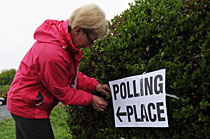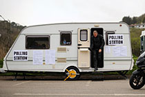 圖:英國(guó)選民在大篷車內(nèi)投票