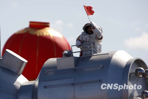 圖:神七航天員亮相群眾游行隊(duì)伍
