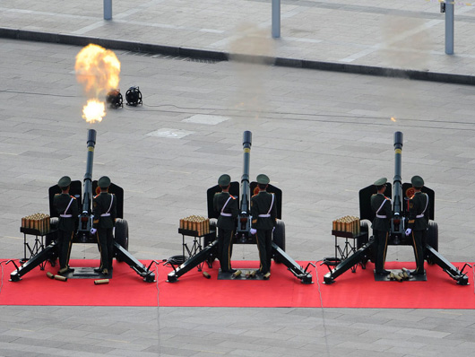 國(guó)慶慶典禮炮在天安門廣場(chǎng)鳴響