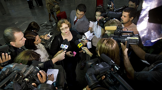 圖:巴西副總統(tǒng)在里約熱內盧機場舉行記者會