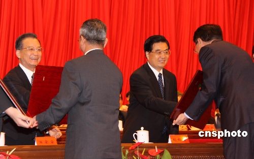 胡錦濤溫家寶向受表彰的先進集體和個人代表頒獎