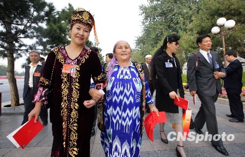 圖:少數(shù)民族代表參加國(guó)慶慶典