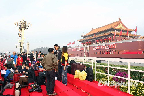 圖:國(guó)慶盛典開(kāi)始前的觀禮臺(tái)