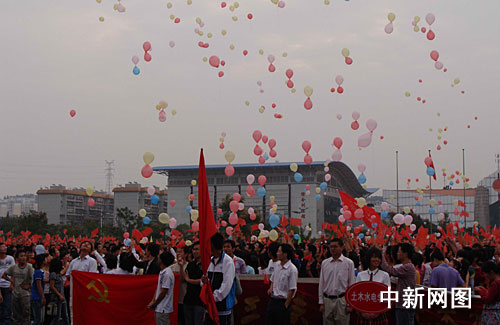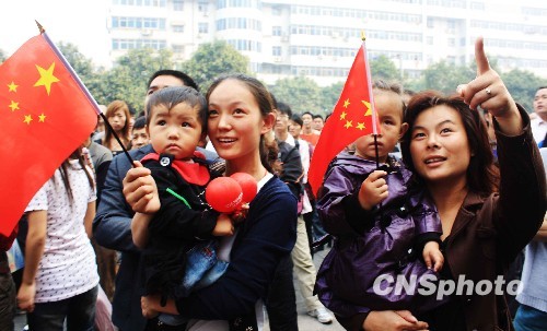 組圖:重慶市民街頭歡慶祖國(guó)60華誕