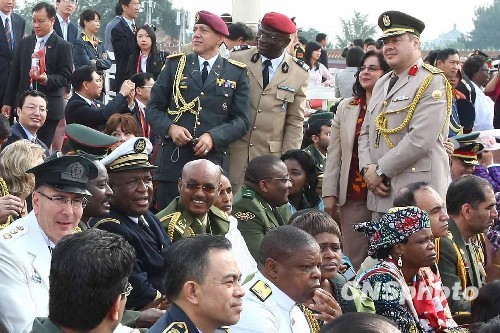 外國(guó)武官云集觀禮臺(tái) 準(zhǔn)備觀看閱兵儀式