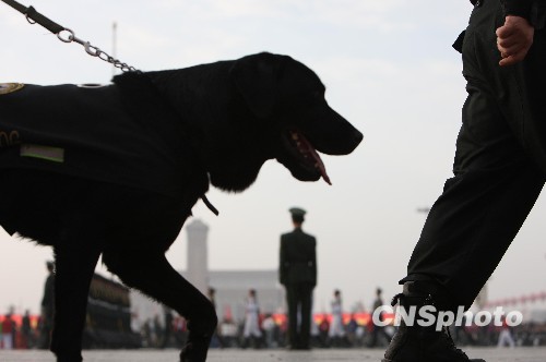 圖:國(guó)慶慶典前搜爆犬在行動(dòng)