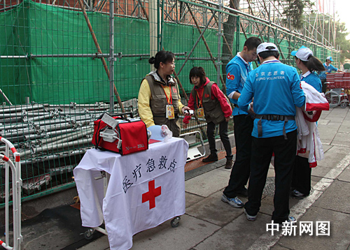 圖:天安門觀禮臺(tái)下醫(yī)療點(diǎn)就位