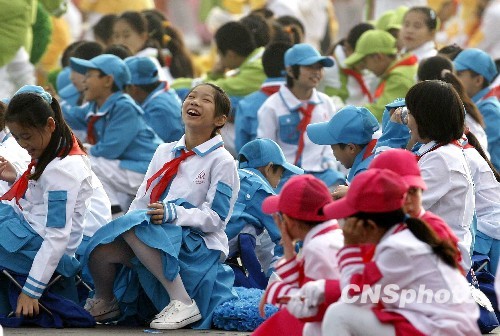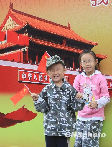 圖:等待國(guó)慶盛典開(kāi)始的孩子們