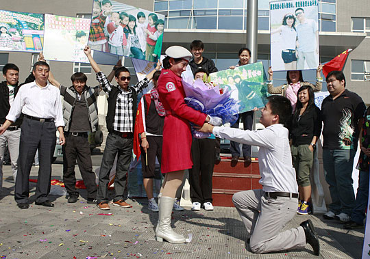 圖:24歲小伙閱兵村里向民兵女友求婚