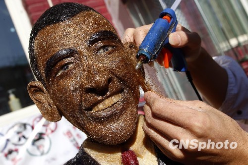 時尚發(fā)型設(shè)計師制作頭發(fā)絲版“奧巴馬”
