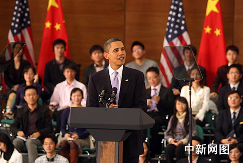 圖:美國總統(tǒng)奧巴馬在上海發(fā)表演講