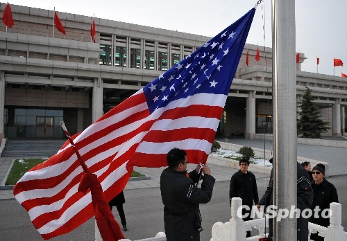 圖:中美國旗飄揚歡迎奧巴馬訪華(2)
