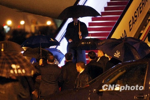 圖:美國總統(tǒng)奧巴馬離開上海前往北京