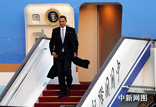圖:美國總統(tǒng)奧巴馬抵達北京