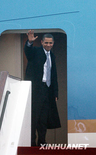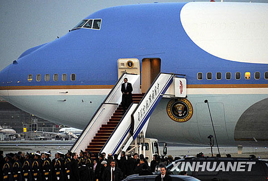 圖:美國總統(tǒng)奧巴馬乘“空軍一號”抵達上海