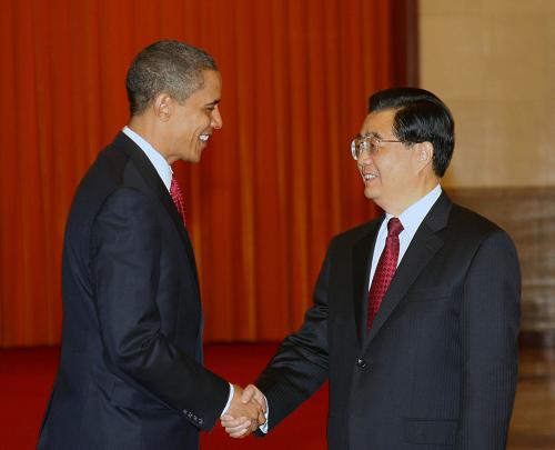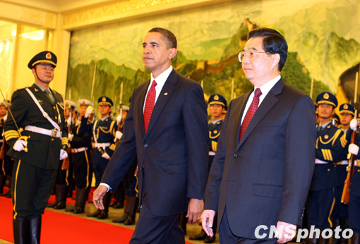 圖:胡錦濤舉行儀式歡迎美國總統(tǒng)奧巴馬訪華