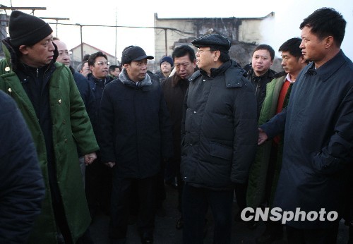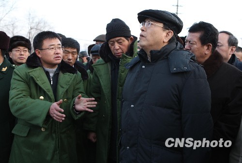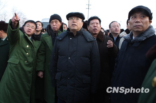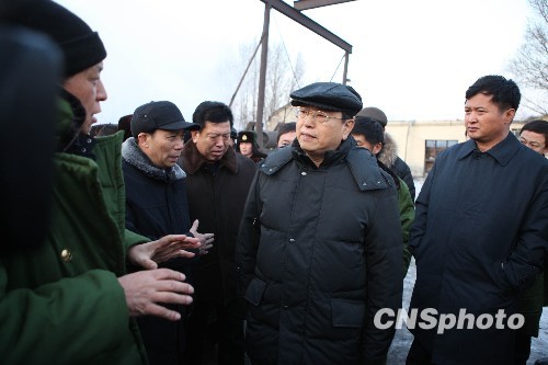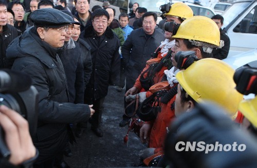圖:張德江在鶴崗礦難事故現(xiàn)場指導(dǎo)救援工作