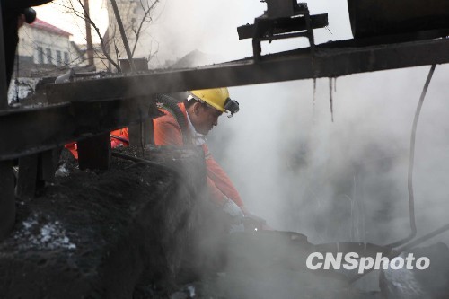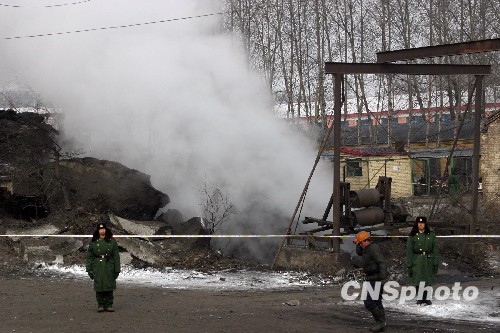 圖:鶴崗礦難現(xiàn)場井口冒出濃濃蒸汽