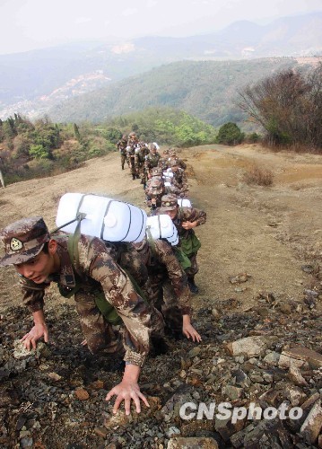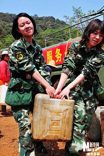 圖:消防官兵為貴州黔西南旱區(qū)百姓送水