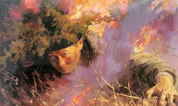 第二天11點鐘的時候,敵人胡亂發(fā)出一顆燃燒彈,忽然落邱少云身旁,燒著了他身上的茅草.這時候,他要站起來,是完全可以把火撲滅的.邱少云想起,出發(fā)前,首長交代要嚴(yán)格遵守埋伏紀(jì)律.邱少云更加知道,要是他爬起來,埋伏在這里的幾十位戰(zhàn)友,就會被敵人發(fā)覺,就有可能被敵人消滅,這樣就破壞了原定的戰(zhàn)斗計劃.他決定躺著不動.我軍陣地上的指揮員,看到埋伏地點起火,連忙命令向敵人開炮,擾亂敵人的注意力.這時候,邱少云還是沒有爬起來撲滅自己身上的火.烈火繼續(xù)燃燒著他的身體.邱少云咬著牙,小聲向靠近的戰(zhàn)友李士虎說:"勝利是我們的,但是我不能完成爆破任務(wù)了,交給你去完成吧!"說完,他把被烈火燒著的身體更緊地貼到地上,一直到犧牲,也沒動一下.李士虎急得咬破了嘴唇,眼睛里像要冒火.但是,他和邱少云一樣,和埋伏在那里的所有戰(zhàn)友一樣,想到了整體,想到了整個戰(zhàn)斗的勝利,眼看著他親愛的戰(zhàn)友壯烈犧牲;忍受著內(nèi)心的仇恨,焦急地等待著戰(zhàn)斗的信號.