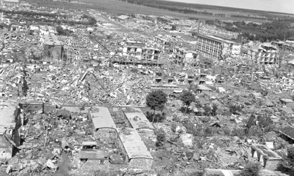 極震區(qū)以唐山為中心向四面延伸,約47平方公里。唐山市老區(qū)多為老式單層民房,震后變成一片瓦礫;新市區(qū)大多是磚混結(jié) 構(gòu)多層建筑,幾乎倒塌殆盡;鋼筋混凝土框架結(jié)構(gòu)的高層建筑物亦未能幸免,鐵路軌道發(fā)生蛇形扭曲或由于路基下沉而呈波浪式 起伏,地表產(chǎn)生寬大裂縫,橋梁普遍塌毀,地震構(gòu)造裂縫延伸達(dá)8公里,裂縫帶附近的地面運(yùn)動非常驚人,其兩則200多米的范圍內(nèi)連人都被拋向空中。