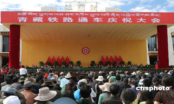 2006年7月1日,青藏鐵路全線建成通車。青藏鐵路全長(zhǎng)1956公里,最高點(diǎn)海拔5072米。青藏鐵路在中國(guó)是與南水北調(diào)、三峽工程、載人航天齊名的代表工程。