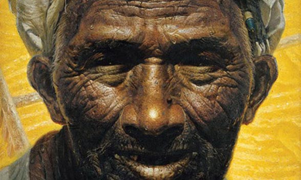 羅中立《父親》一畫曾獲“中國青年美展”一等獎,其畫面具有一種悲劇性的震撼力,表現(xiàn)了生活在貧困中的老農(nóng)形象;老農(nóng)開裂的嘴唇、滿臉的皺紋以及手中粗劣的碗等等寫實的描繪,消除了觀賞者與作品之間的隔膜,畫家藉此來對傳統(tǒng)文化和民族進行反思。