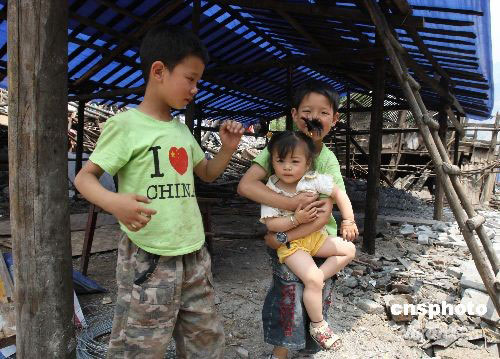 圖:地震災(zāi)區(qū)戀“家”的雙胞胎