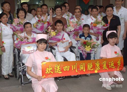 北京老年醫(yī)院九名四川震區(qū)傷員出院返鄉(xiāng)