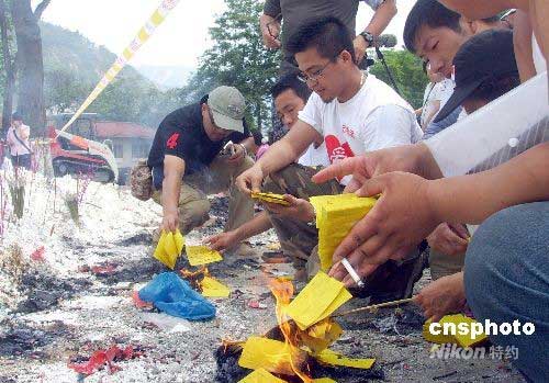 圖:都江堰民眾自發(fā)祭奠遇難親友