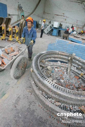 圖:東方汽輪機廠清理災后廠房準備重建(4)