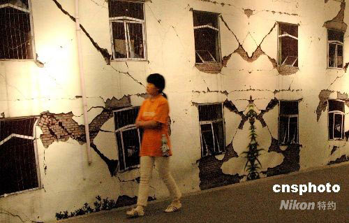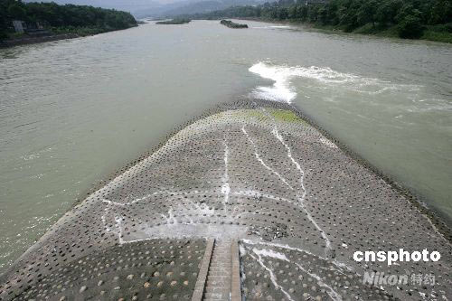 圖:四川都江堰魚嘴分水堤震后出現(xiàn)裂縫