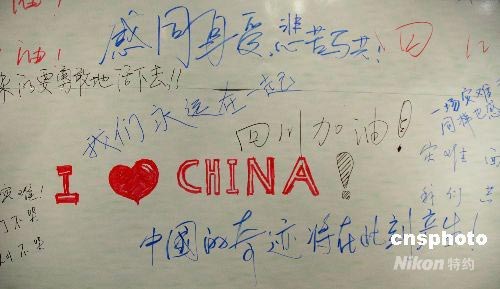 圖:觀眾在汶川抗震救災紀實圖片展留言