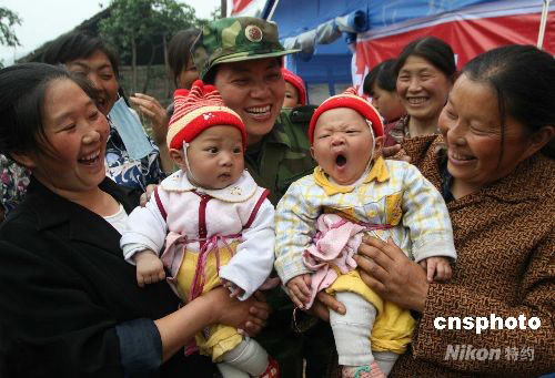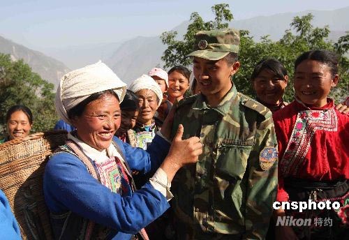 圖:四川震區(qū)羌族民眾夸贊解放軍