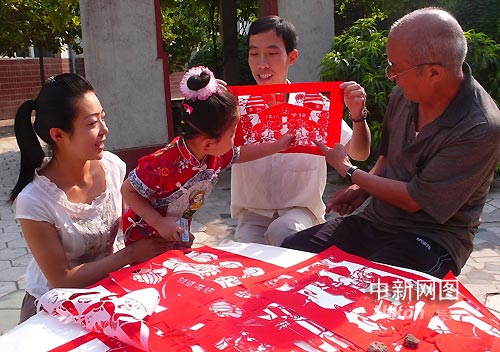圖:山西侯馬民間藝人創(chuàng)作抗震救災剪紙作品