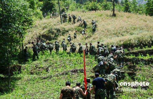 圖:解放軍官兵全力尋找失事直升機