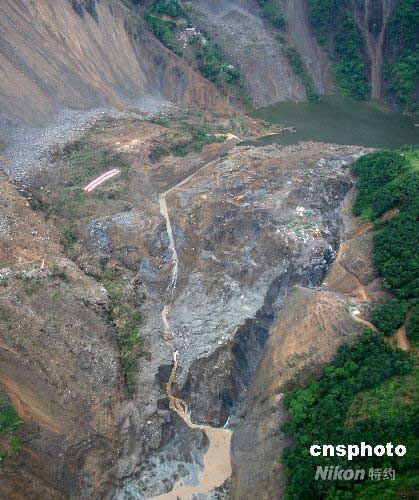 圖:唐家山堰塞湖開始泄流