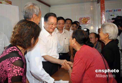 溫家寶視察慰問綿陽涪城區(qū)居民疏散安置點